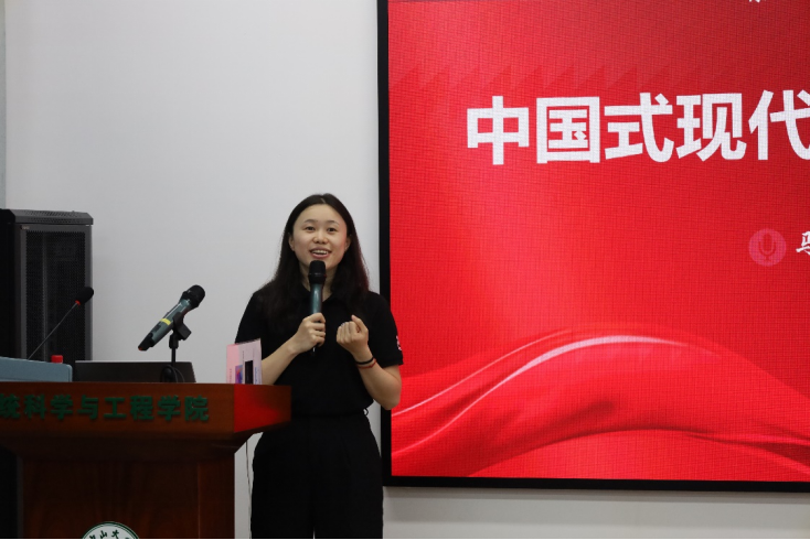 中山大学马克思主义学院助理教授陶颖老师从马克思主义对现代化进程的指导意义到中国特色社会主义道路上的现代化探索进程,为在座师生呈现了一场思想意义深刻的讲座。陶老师讲述了中国式现代化不仅来源于我们独特的文化,更来源于中国独特的历史命运,更溯源于中国独特的国情,只有走中国式现代化道路才能实现发展上的独立自主,推动精神上的自信自立。并呼吁同学们在现代化过程中,要明确自己的责任,树立自己的理想,为科教兴国战略、人才强国战略贡献更多青春力量,汇聚更多发展新动能。