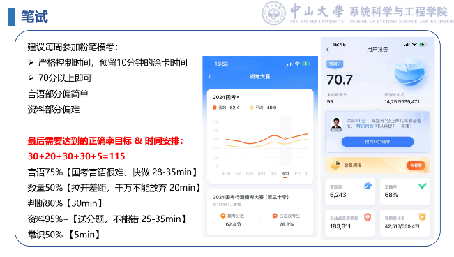 计算机科学与技术专业2021级硕士刘念同学介绍了备考公务员的经历。她从备考时间线、如何准备笔试及面试、如何获取考试资讯方式等不同方面分享了选调的心路历程,她提到定向选调、普通选调、选聘生等机会很多,梳理不同类型企业的求职时间线,更有条理地规划求职进程。她分享了行测、撰写申论、结构化面试的技巧,应结合岗位所在地的事例,例如当地宣传、人民日报评论、学习大国等,关注应聘单位的基本情况和最新动态,近期的热点新闻话题。无领导小组讨论环节,争取多发言并争取拿到总结的角色。