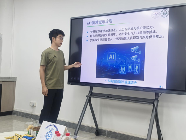 计算机学院2024级博士研究生陈泓栩带来《AI与智慧城市治理:行人重识别与小股人群智能感知》的报告。他系统介绍了小股人群重识别的核心方法,并结合智慧安防与城市管理的实际案例,展望了其在交通疏导、公共安全和人流调控中的应用。张权老师在点评中结合校门安防、人流轨迹分析和商业空间布局等实例,形象说明了该技术已深刻渗透在日常生活和社会治理中,并强调了其在国际比较中的现实意义。