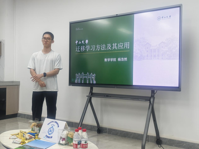 数学学院2023级硕士研究生杨浩然作题为《AI的下游应用:迁移学习方法简介》的报告。他从数学建模的角度阐述了迁移学习解决高标注成本与跨域分布偏移问题的重要价值,介绍了典型方法和理论基础,并展望了迁移学习在医疗、环境、人文等领域的交叉创新潜力。张权老师点评时指出,数学为人工智能提供了坚实的理论支撑,而未来可信且高效的AI模型,正需要数学与其他学科的持续融合。