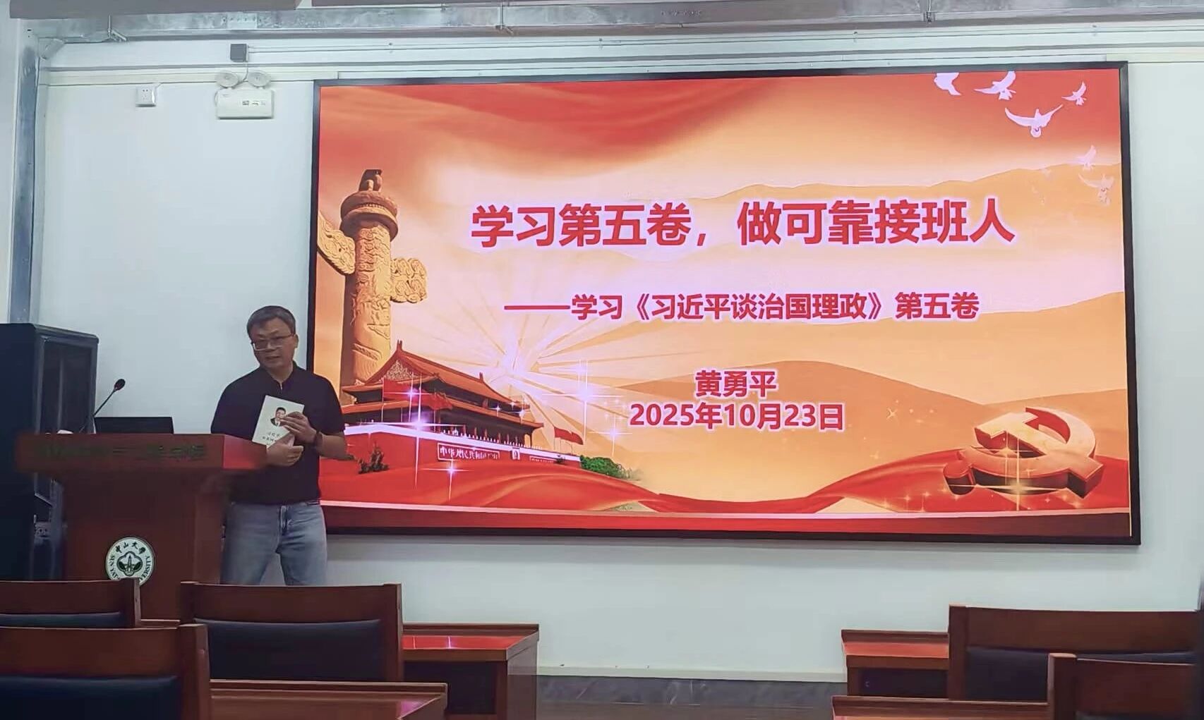 为深入学习贯彻《习近平谈治国理政》第五卷重要论述,引导青年学子在产业变革与科技革命深度融合的浪潮中明晰成长坐标、勇担时代使命,2025年10月23日上午,系统科学与工程学院党委书记黄勇平在389栋414报告厅,为2024级信息工程实验班本科生讲授思政第一课。课程紧扣新质生产力加速迭代的时代机遇与“卡脖子”技术攻坚的现实挑战,从国家战略布局与青年成长赛道双向切入,为同学们厘清发展迷雾、锚定成长航向,激励同学们在新质生产力发展浪潮中扎根专业、挺膺担当。