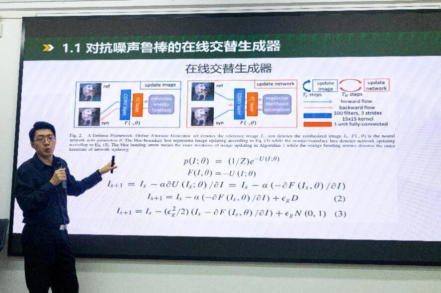 针对数据噪声的挑战,李灏峰副教授介绍了对抗噪声样本的计算方法,并提出了对抗噪声鲁棒性的在线交替生成器与对抗鲁棒的真实世界图像超分辨率方法。