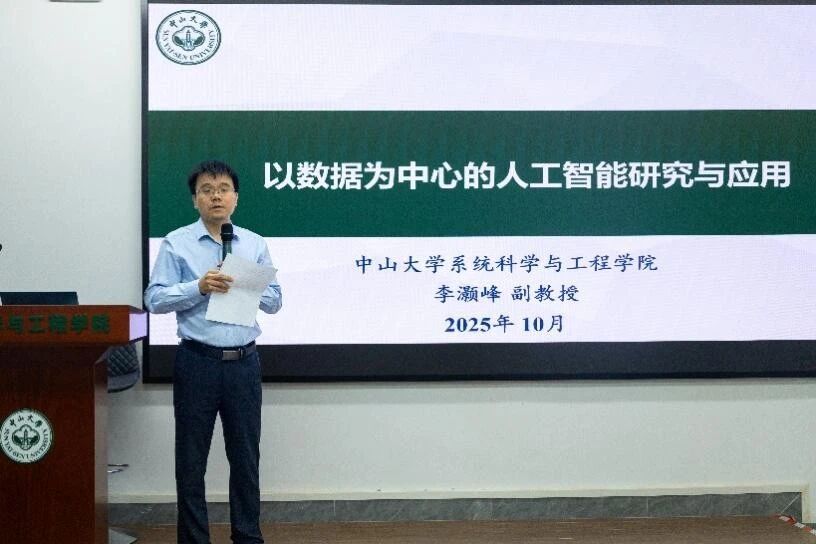 2025年10月21日晚,系统科学与工程学院前沿讲座在中山大学广州校区南校园389栋414讲学厅举行,系统科学与工程学院李灏峰副教授以“以数据为中心的人工智能研究及应用”为主题为系统科学与工程学院师生进行讲座,本次讲座由学院副院长庄学彬教授主持。