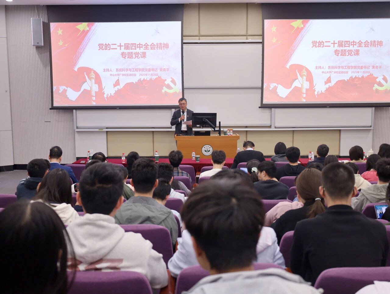 为引导师生党员准确把握党的二十届四中全会精神,2025年11月28日下午,系统科学与工程学院在南校园389栋106讲学厅举办“党的二十届四中全会精神专题党课”。本次党课由学院党委书记黄勇平主持,特邀中山大学党史党建研究院执行院长、马克思主义学院副院长张浩教授主讲。学院教职工党支部、各学生党支部、先进技术研究院党支部党员共同参加学习。