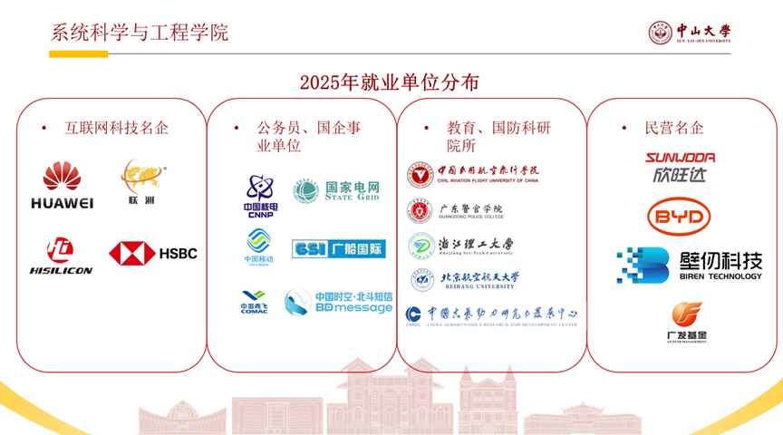 中山大学系统科学与工程学院高度重视学生就业创业工作,始终坚持以学生为中心,坚定树立 “以立德树人为根本,以服务发展为宗旨,以促进就业为导向” 的工作理念,致力于构建精准高效的就业服务体系,凝聚各方合力全面促进高质量充分就业,为学生匹配心仪岗位、实现人生价值保驾护航。