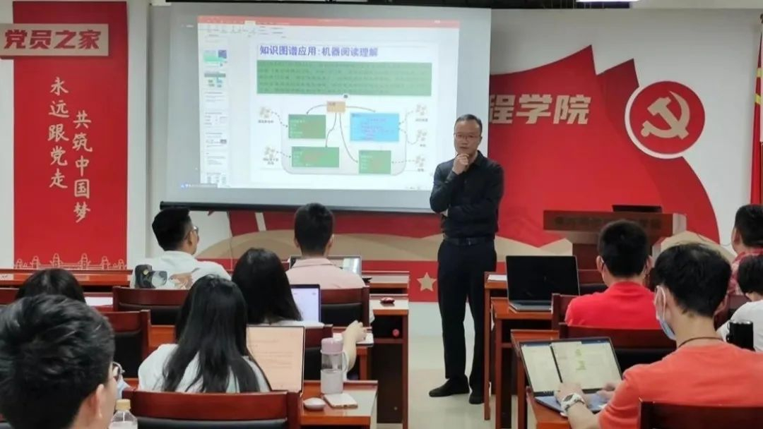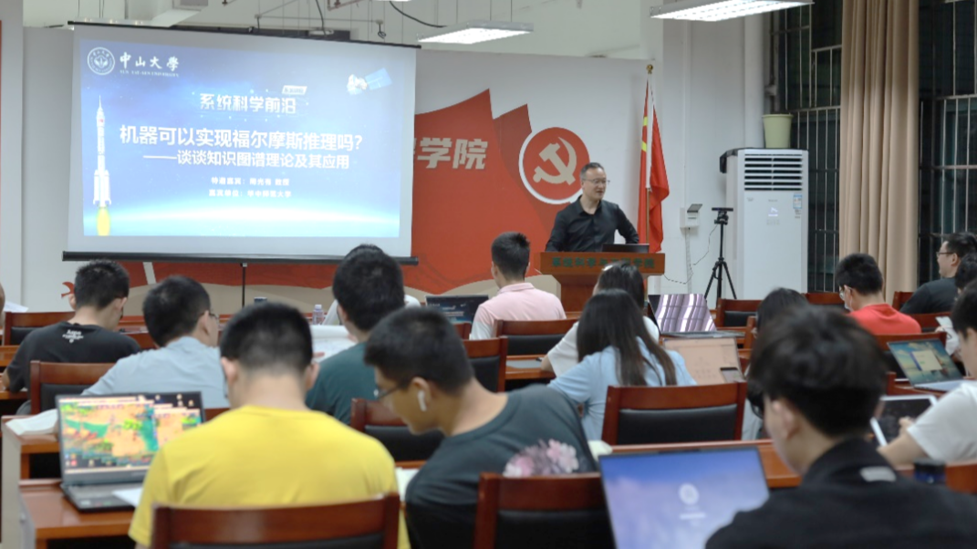 2022年4月22日晚,系统科学与工程学院在广州校区东校园格致园党员活动室举行系统科学与工程前沿系列讲座,华中师范大学周光有教授受邀为师生进行主题为《机器可以实现福尔摩斯推理吗?谈谈知识图谱理论及其应用》的学术分享。讲座采用线上、线下相结合的方式,由张涛教授主持,院长陈洪波教授、副院长张传富副教授、系统集成与管理教研室主任李雄教授等众多师生参加活动。
